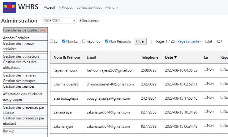 3– Developing the page that allow managing the sent contact forms in the administration interface