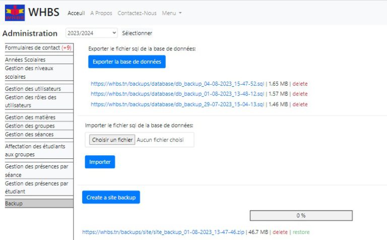 5- Developing a backup page in the administration interface that allows to backup and restore the database as well as the website files: